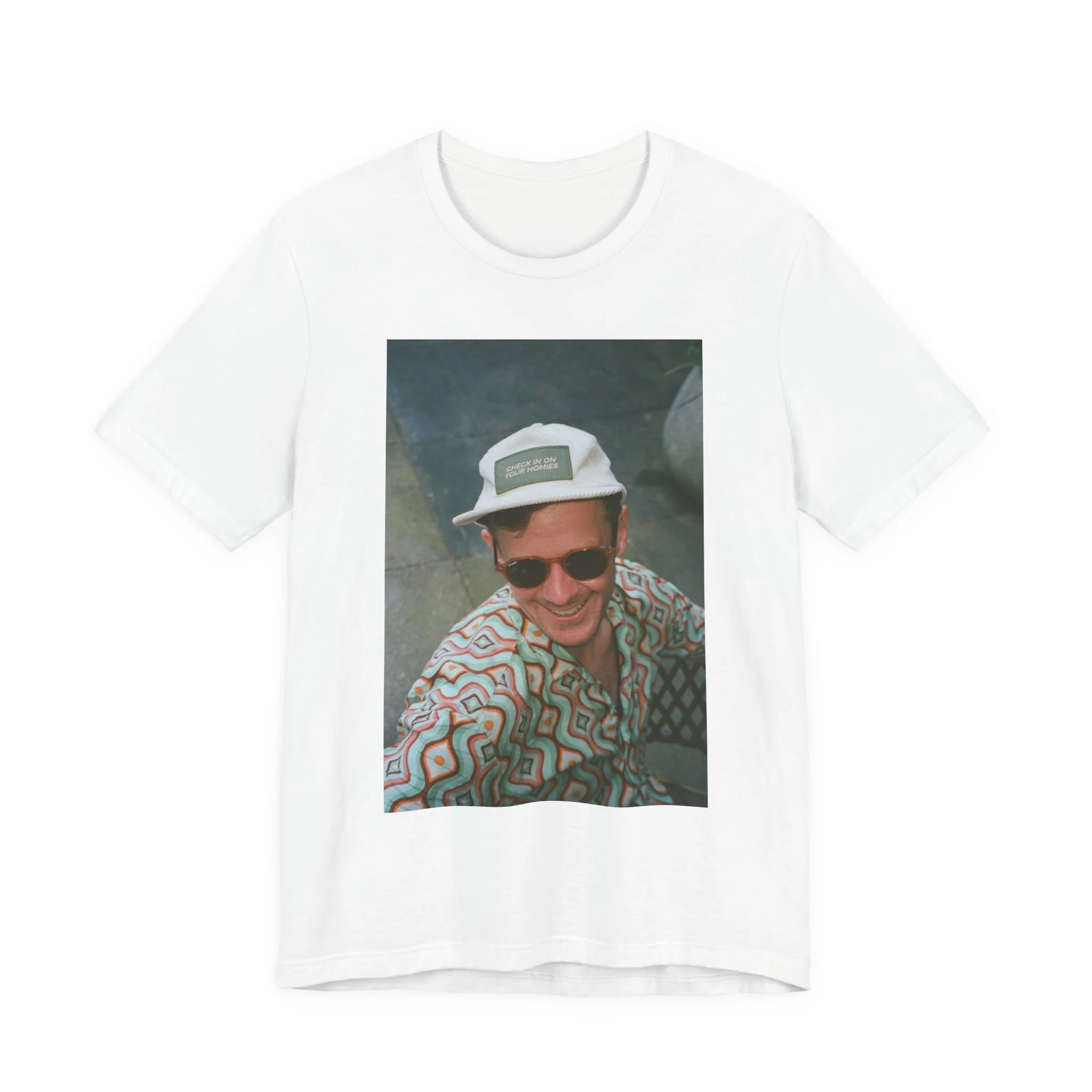 Retro Photo Tee — Smiling Guy in Cap Graphic T-Shirt